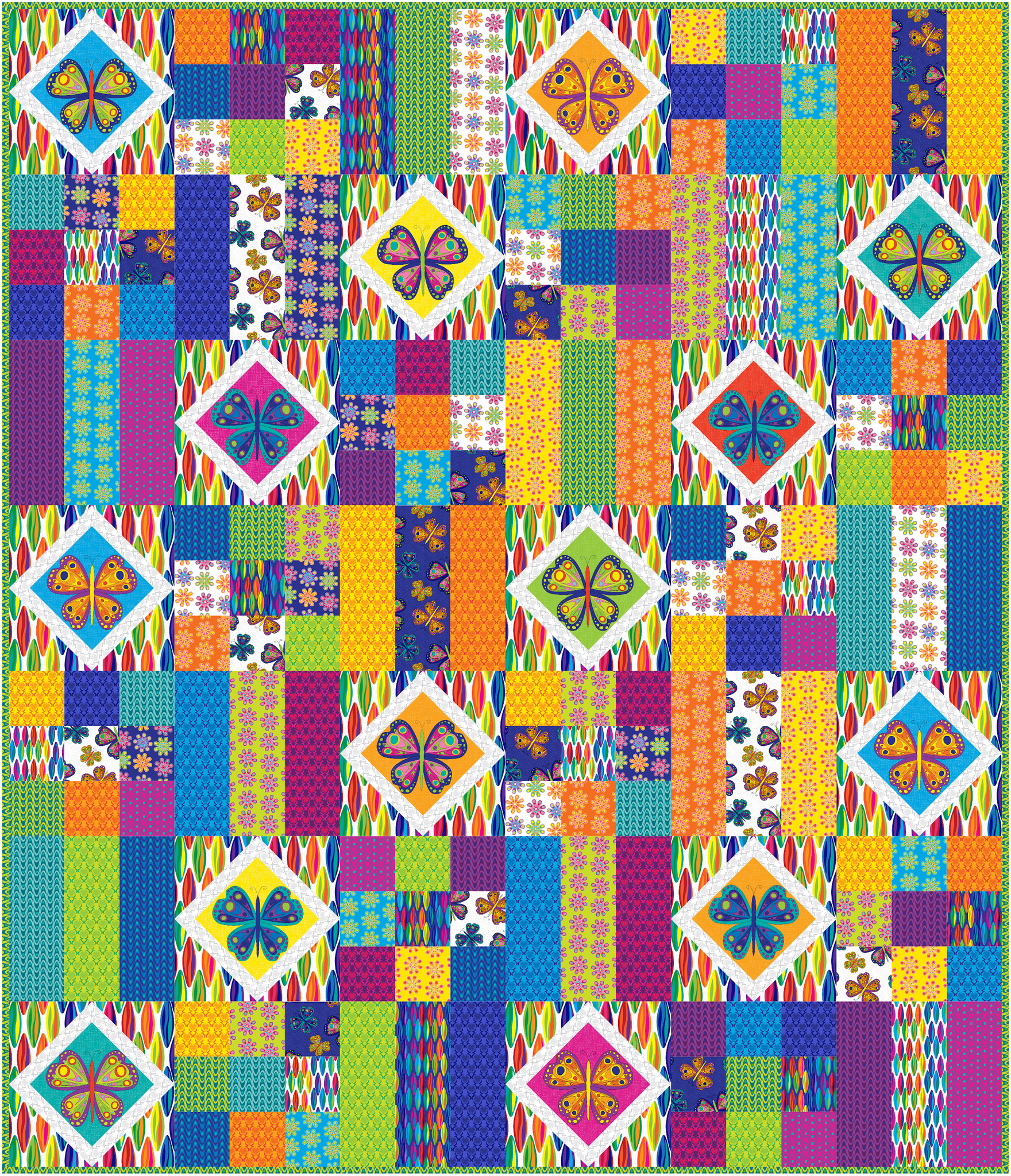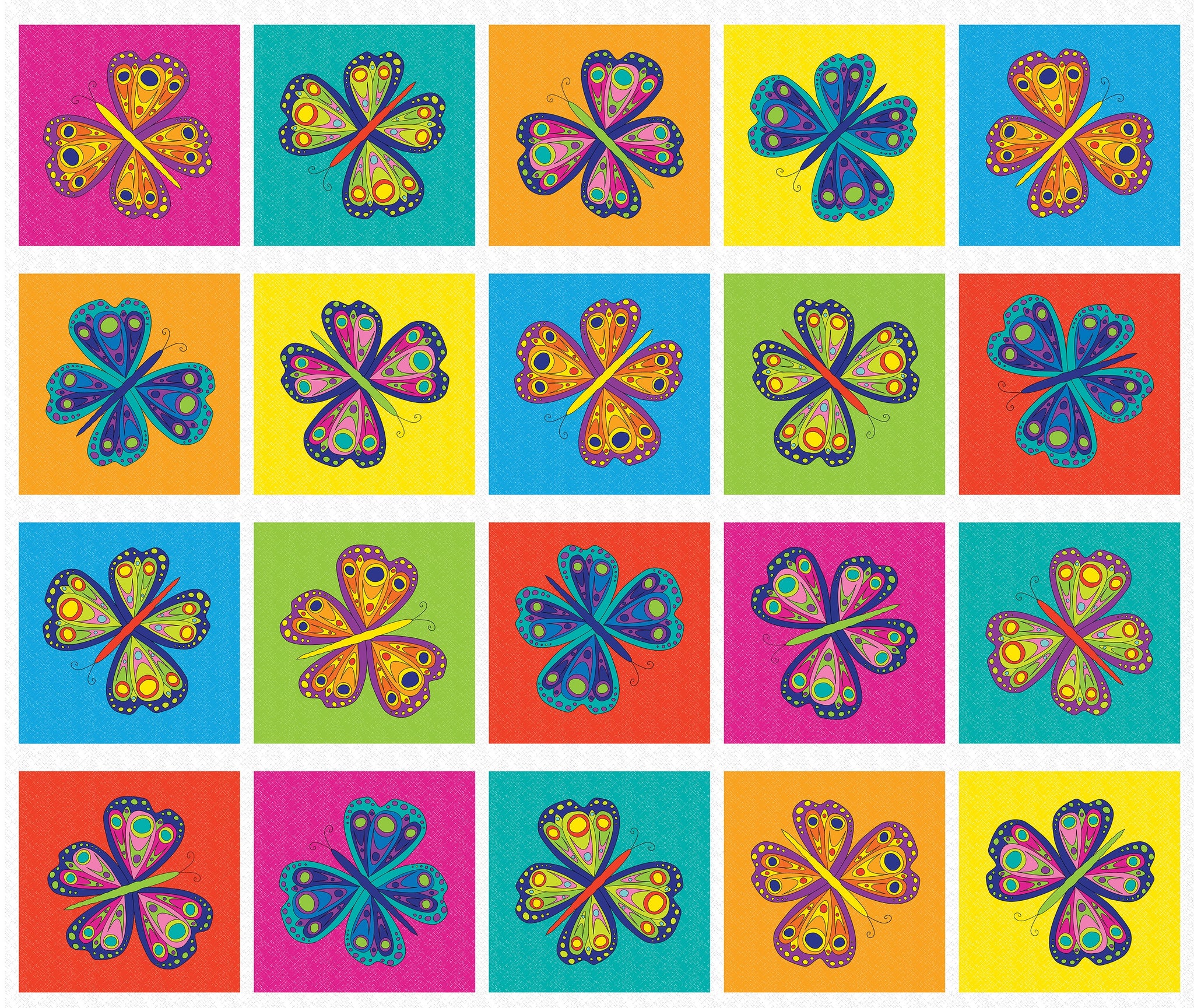 This beautiful 1 yard panel includes (20) butterflies. Each butterfly box measures 8" x 8" and are orientated in a variety of directions to give movement. Use as a stand alone panel our cut out the individual squares to use in preexisting patterns such as in our Flutter Fun Free Pattern, In Flight or Freeze Frame Patterns. Sold by the 1 yard panel only and measures 36" x 44" approximately.
