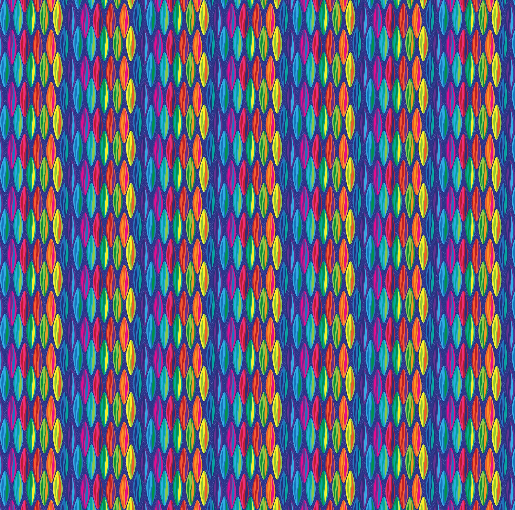 Multi colored pods in color wheel order on a dark blue thatched background. Sku: Metamorphosis 16833-56