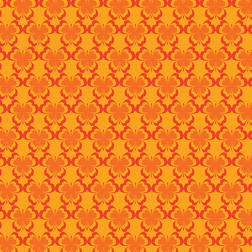 Tiny tone on tone butterflies on an orange and deep orange background. Sku: Flutter 16831-38